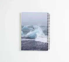 On the famous black sands of Iceland, ancient ice meets the relentless sea. This dramatic photograph captures the chaotic beauty of Diamond Beach, where thousand-year-old icebergs are tossed and shattered by the powerful Atlantic surf. Luminous blue shards, like giant diamonds, stand against the turbulent grey waves in a stunning display of natural force. A captivating tribute to the raw, elemental power of our planet, this piece brings the wild energy of the Icelandic coast to your walls.