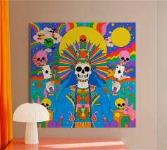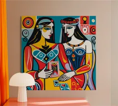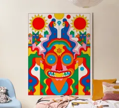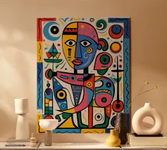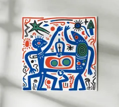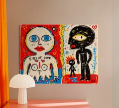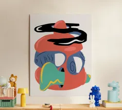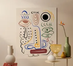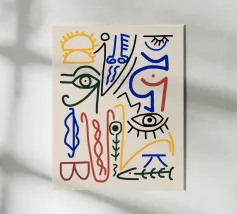 Con le sue caratteristiche linee nere decise e i campi di colore vibranti di ciano, magenta e giallo, Signorino cattura un momento di metamorfosi interiore.