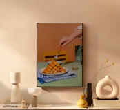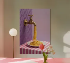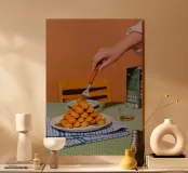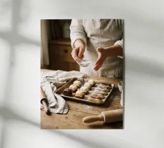 Design sans titre1.jpg): Una natura morta rustica e solare che cattura il gioioso caos della creazione della colazione perfetta. Una pastella fresca, uova di fattoria e una piastra per waffle pronta a trasformare semplici ingredienti in una delizia dorata.