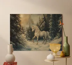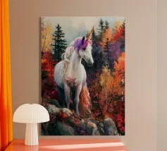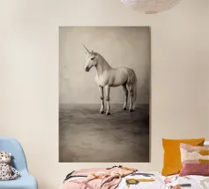 Sperimentate la pura magia di una creatura leggendaria con questo splendido ritratto di unicorno. Catturato in uno stile artistico senza tempo, il maestoso unicorno bianco si erge con grazia e potenza. Lo sfondo minimalista e strutturato esalta la sua bellezza eterea, rendendolo un pezzo sofisticato e incantevole per un interno classico o moderno, per la stanza di un bambino o per qualsiasi spazio che abbia bisogno di un po' di meraviglia.