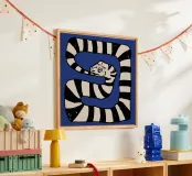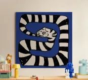 Lo Snake Eating Tail illustra l'intramontabile motivo dell'ouroboros su un audace sfondo blu. Evocando il mistero, la saggezza e l'infinito, quest'opera d'arte unisce l'eredità mitologica al minimalismo moderno, diventando un pezzo unico. Completa la collezione di quattro varianti che possono essere mescolate e abbinate per creare una parete dinamica.
