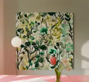 A richly layered field of green, olive, and chartreuse, this expressive watercolor captures the wild energy of nature in full growth. With its organic rhythm and deep tonal range, it’s perfect for earthy modern interiors, statement walls, or plant-forward spaces seeking natural texture and movement.