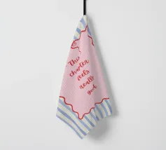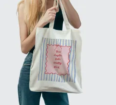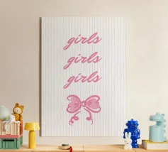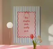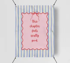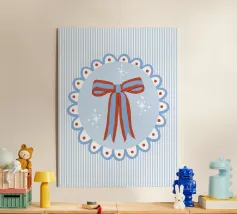 Blue stripes, with wavy pink frame and bow