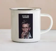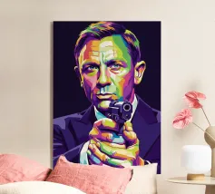 "Daniel Craig nei panni di James Bond, livido e insanguinato, guarda intensamente in avanti tenendo una sigaretta sulle labbra, trasmettendo un senso di cupa determinazione e incrollabile risolutezza.