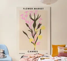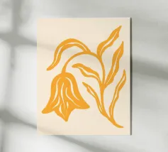 Un semplice disegno a linee marroni rappresenta una pianta con tre rami e piccole forme che ricordano foglie o boccioli. Lo stile minimalista e i colori neutri conferiscono un'atmosfera astratta.