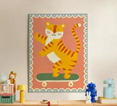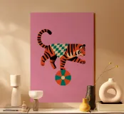 Wild meets balance: a confident tiger wearing a cap balances powerfully on a ball – a motif full of energy, courage and playful strength. This design stands for inner control despite power, for focus despite dynamism and for the courage to go your own way. The tiger symbolises strength and self-confidence, while the balance shows that true strength comes from the centre.