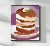 Colourful watercolour of a tiramisu. Generated with AI (Canva).