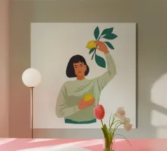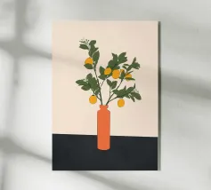 La stampa d'arte "Citrus Touch" presenta un vibrante ramo di limone abbinato a forme astratte, mescolando la freschezza della natura con un tocco moderno. Questo design vivace aggiunge un tocco di colore e di stile a qualsiasi spazio.