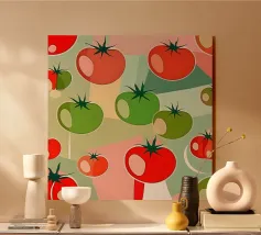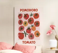 Il design allegro e colorato presenta un motivo di pomodori fresco e appetitoso.