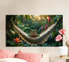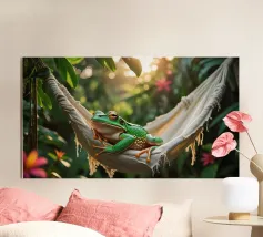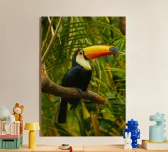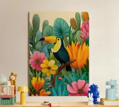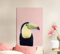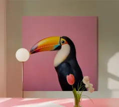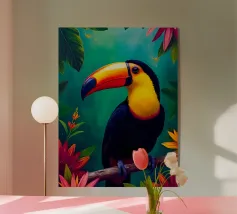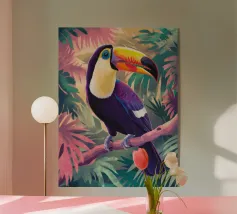 Con il suo iconico becco e la sua posa rilassata, questo tucano sembra nato per la vita sull'amaca. Porta colore e calma, sia che lo appendiate in giardino che in un angolo soleggiato. Una stampa estiva che ricorda che anche il dolce far niente è un talento.