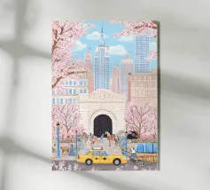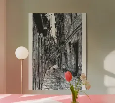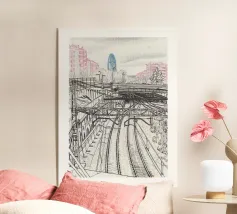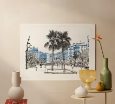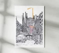 Stampa di un disegno originale di Plaça de la Virreina nel quartiere Gràcia di Barcellona.