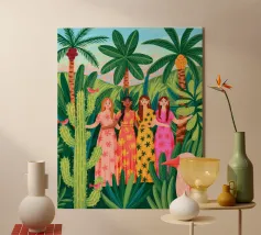 Rafaela Mascaro is a celebrated designer from São Paulo, Brazil, known for her powerful illustrations that feature natural and botanical elements. Her work seamlessly weaves women's stories into the landscape, merging human forms with organic surroundings in an evocative manner.