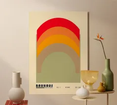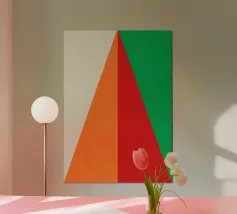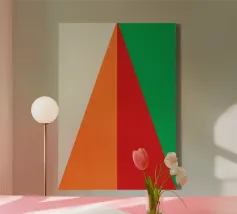 Un triangolo astratto infuso di colori Bauhaus, che simboleggia la lettera "A" e la piramide dell'equilibrio. Questo disegno riflette armonia, struttura e chiarezza creativa, perfetto per chi apprezza l'estetica minimalista e la geometria significativa.