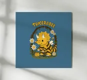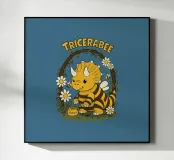Un dolce ibrido di triceratopo e ape si trova felicemente tra i fiori con un vaso di miele ai suoi piedi. Questa deliziosa creatura combina il fascino della natura con la simpatia della preistoria. Perfetto per gli appassionati di dinosauri, api e personaggi irresistibilmente stravaganti.