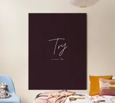 A refined minimalist typography poster featuring elegant handwritten lettering on a deep burgundy background. Intimate and expressive, the composition balances emotional intensity with clean modern simplicity. “Try One More Time” is a quiet reminder about resilience — about staying with the process even when it feels difficult. Ideal for home offices, studios, bedrooms, or contemporary interiors that embrace depth and intention. Bold. Honest. Determined.