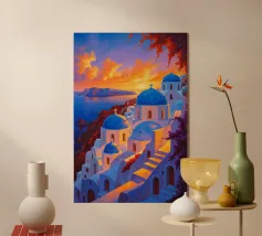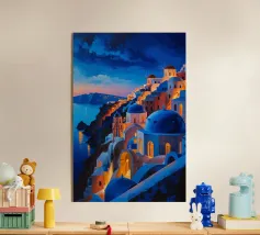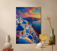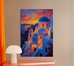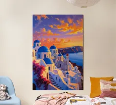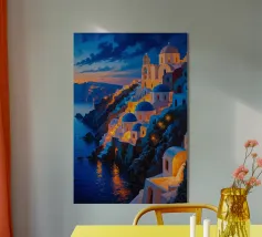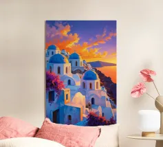 Twilight Glow Over Santorini's Clifftop Architecture plexiglass