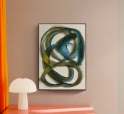 "I miei quadri astratti sono creati in vari modi... ma all'inizio di solito ci sono carta, pennelli e colori acrilici..."