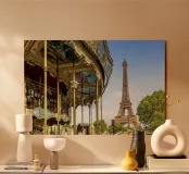 At 324 metres, the Eiffel Tower in Paris dominates the cityscape. It is one of the most visited landmarks in the world. Here is a typical street scene with a carousel. Classic impression from Paris
