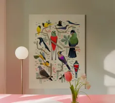 Trasformate il vostro spazio con il nostro accattivante Poster illustrato di uccelli esotici, che presenta una straordinaria serie di specie di uccelli colorati e unici. Questa splendida opera d'arte porta la bellezza della natura all'interno, rendendola un'aggiunta perfetta a qualsiasi stanza della casa o dell'ufficio. Ideale per gli appassionati di uccelli, per gli amanti della natura o per chiunque voglia aggiungere un tocco di colore al proprio arredamento, questo poster si adatta a diversi stili di interni, dal moderno al bohémien.