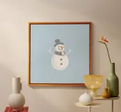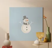 Il pupazzo di neve, completo di sorriso amichevole, naso a carota e braccia a ramoscello, aggiunge un tocco di allegria a una serena atmosfera invernale, perfetta per le decorazioni stagionali.