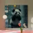 Un simpatico panda si gode la pioggia in piedi in una pozzanghera plexiglass