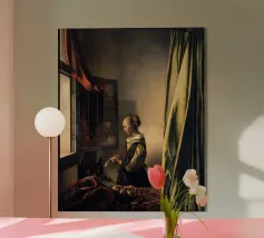vermeer - un pittore nel suo studio, che dipinge un modello femminile plexiglass