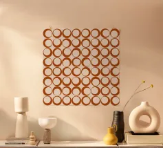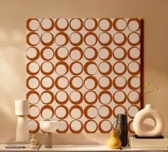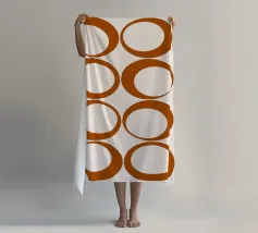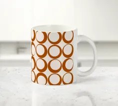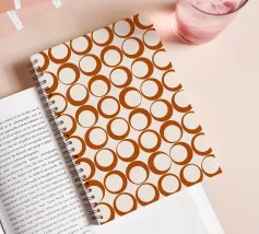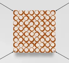 Questo motivo ad anelli retrò arancione bruciato trasmette un'energia calda e nostalgica, ispirata all'arredamento eclettico degli anni '60 e '70. Le sue curve geometriche fluide creano una dichiarazione audace ma accogliente, perfetta per stampe d'arte, tessuti e interni moderni e retrò.