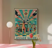 Pour chambre d'enfant , affiche illustré et dessiné représentant un espace de jeux vidéo
