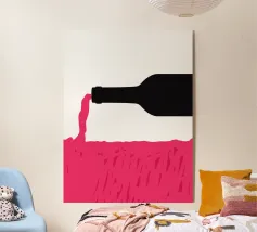 Disegno a linee continue di vino che si versa dalla bottiglia al bicchiere