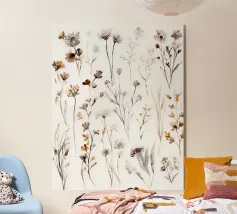 Un elegante acquerello che raffigura un fogliame verde a cascata su steli sottili e tortuosi. Le foglie variano di tonalità dal verde intenso della foresta al verde-giallo fresco, accentuate da morbide pennellate di menta e oro pallido. Le linee organiche e fluide e i sottili schizzi creano un senso di movimento e di luce, evocando un'atmosfera pacifica e botanica.