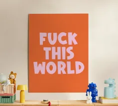 "Il mondo è tuo!" - Un avventuroso motivo estivo nelle vivaci tonalità del rosa, del rosso e dell'arancione. Questo disegno tipografico ispira viaggi ed esplorazioni, mentre il carattere audace incarna libertà e possibilità.