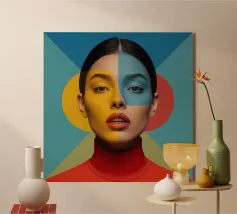 Volto di donna con sovrapposizione di forme geometriche Make up plexiglass