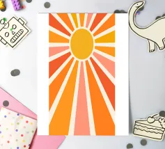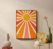 Warm sunrays, gentle colors of orange, yellow and pink, refreshing and decorative for every room in the home. Retro, eclectic and modern interiors, dopamine boost and cozy in one.