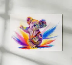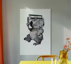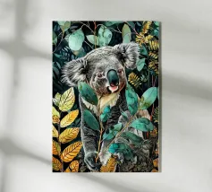 Comica illustrazione di un koala che si gode gli effetti della sua solita pianta di eucalipto. In modo meno tradizionale.