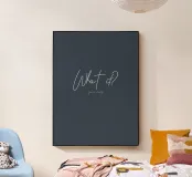 A minimalist typography poster featuring elegant handwritten lettering on a deep slate-blue background. The open-ended question “What If?” creates curiosity and momentum, while the subtle line beneath adds an intimate, personal tone. Short, modern, and quietly powerful, this piece is designed to spark possibility and self-belief. Ideal for creative studios, home offices, bedrooms, or contemporary interiors that embrace understated motivation.