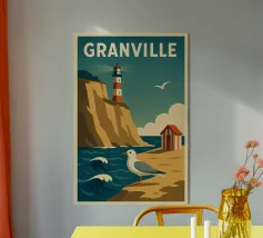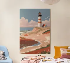 Design di viaggio minimalista dell'Inghilterra meridionale con le famose scogliere bianche (chalk cliffs) e il faro sulla costa inglese vicino a Dover. Tipico paesaggio di scogliere chiare.