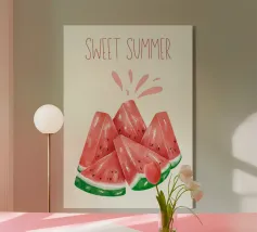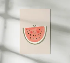 Il personaggio di un'anguria fresca indossa occhiali da sole e un cappello mentre pronuncia un gioco di parole con il testo "Sei un melone!" in bolle vocali.