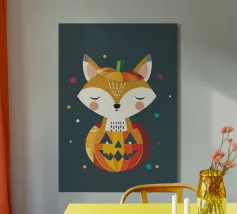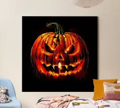 Zucca di Halloween geometrica e colorata con un viso allegro plexiglass