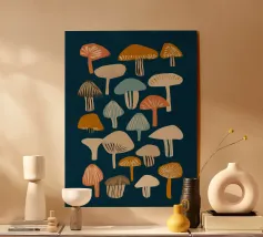 Six charming pumpkins in bright colours and unusual shapes adorn this lovingly illustrated poster. Each pumpkin is unique. The hand-drawn details and the dark, textured background give the motif an autumnal, sophisticated touch. Ideal for anyone who loves seasonal decorations with an artistic flair. Perfect as a mural for the kitchen, living room or studio!