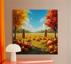 Zucche in un campo d'autunno plexiglass