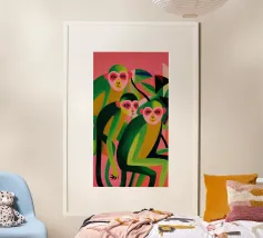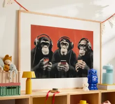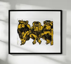 3 scimmie | Non vedono nulla, non sentono nulla e non urlano poster con telaio in legno