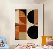 Composizione geometrica astratta con cerchi e quadrati poster con telaio in legno