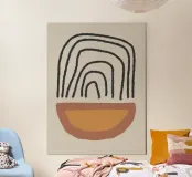 Quadro astratto moderno con forme organiche nei toni caldi del marrone e dell'arancione e linee nere. Opera d'arte minimalista con pennellate nere su sfondo beige. Per gli stili di vita e gli interni bohémien, moderno, essenziale, industriale e scandinavo. Ideale per la camera dei bambini, la camera da letto, il soggiorno o l'ufficio.