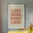 Ama di più, preoccupati di meno Testo grafico poster con telaio in alluminio
