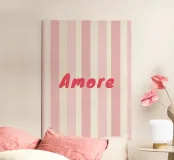 Soft pink and cream vertical stripes paired with the word “Amore” create a gentle, romantic design inspired by Italian sweetness and minimalist aesthetics. Warm, playful, and elegant, this artwork adds a cozy and modern touch to any space. Perfect for bedrooms, living rooms, kitchens, cafés, or interiors that love soft colors and simple, expressive typography.