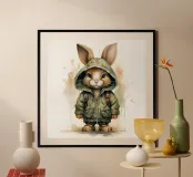 Lepre acquerellata in felpa con cappuccio poster con telaio in alluminio