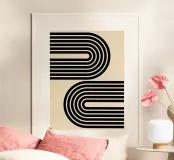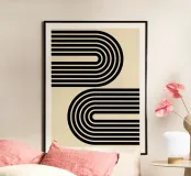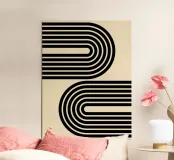Archi geometrici minimalisti a strisce in grassetto, nero su beige poster