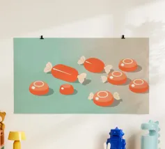 Assortimento di caramelle colorate sparse poster