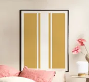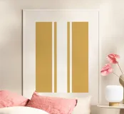 Strisce centrate Basic Scandi 1 | Bianco su giallo senape poster con telaio in plastica