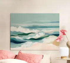 Minimal coastal abstract in soft pastel colors.